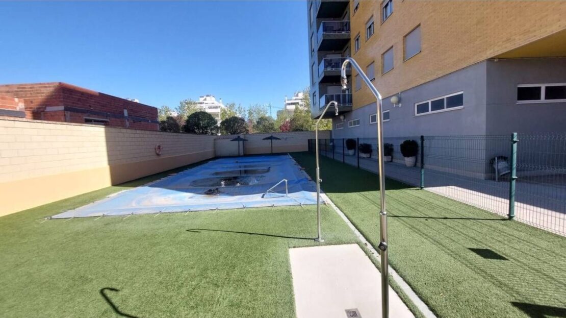 Tiene una superficie de 101 m2, distribuidos en 3 dormitorios, salón-comedor, cocina con lavadero y 2 baños. La vivienda dispone de suelo de tarima, puertas de roble y ventanas de aluminio abatibles con climalit, además de calefacción individual y pre instalación de aire acondicionado. La finca cuenta con ascensor, jardín y piscina comunitaria.