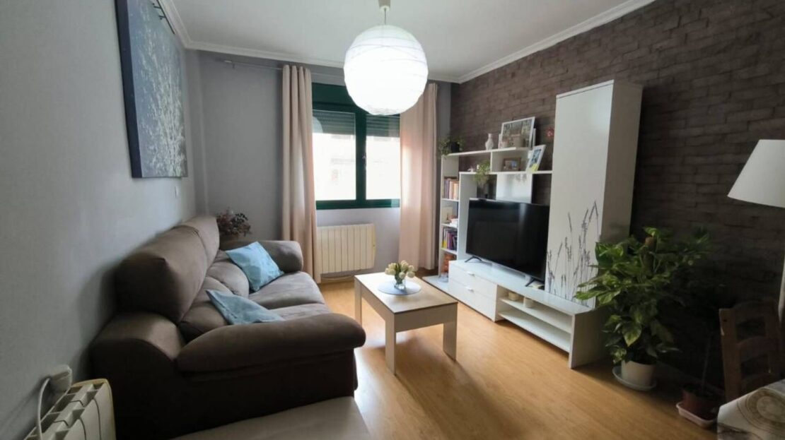 Tiene una superficie de 60 m2, distribuidos en 2 dormitorios, salón-comedor abierto a cocina amueblada y un baño. La vivienda dispone de suelo de tarima, puertas de roble y ventanas de aluminio con climalit, además de calefacción individual y armarios empotrados.